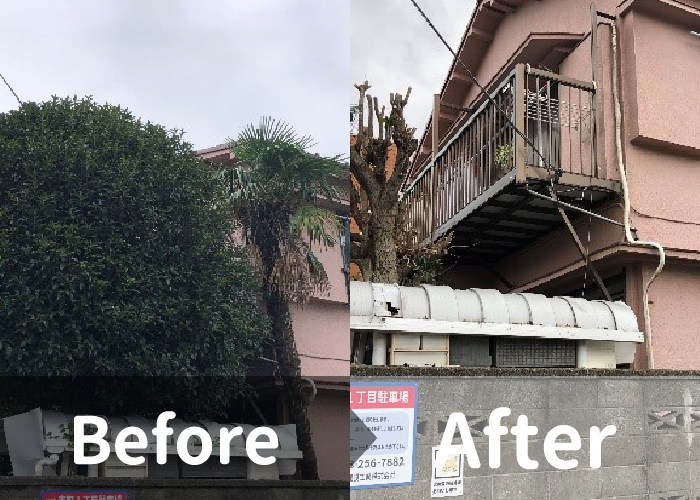 お父さんが亡くなり、家の樹木が伸び放題で困っていましたが、アッと言う間にすっきりとしました。
